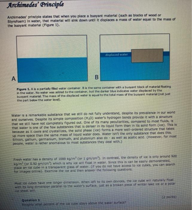 Solved Archimedes Principle Archimedes Principle States Chegg Com